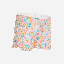 Badeanzug Baby Mädchen Waffelstruktur – Druckmotiv Blumen Koralle