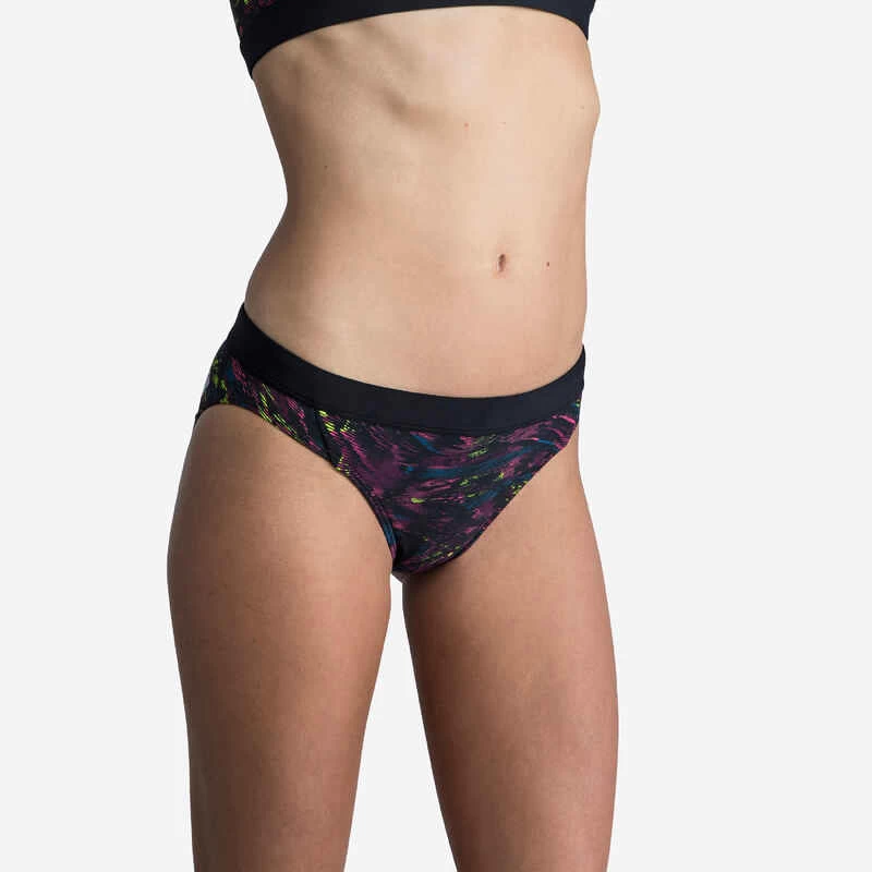 Unsere Ingenieure haben ein Material auf Polyesterbasis entwickelt und die Elasthanfaser durch eine Elastolefin-Faser mit Stretch-Eigenschaften ersetzt, um den Tragekomfort und vor allem die Chlorresistenz zu verbessern. Diese Faser hat folgende Vorteile: Sie trocknet schnell und selbst leuchtende Farben bleiben länger schön.